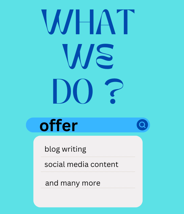 Blog Writing: We craft informative, engaging, and SEO-friendly blog posts that provide value to your audience while boosting your website’s search engine rankings. Our blog content is designed to position your brand as an authority in your industry.